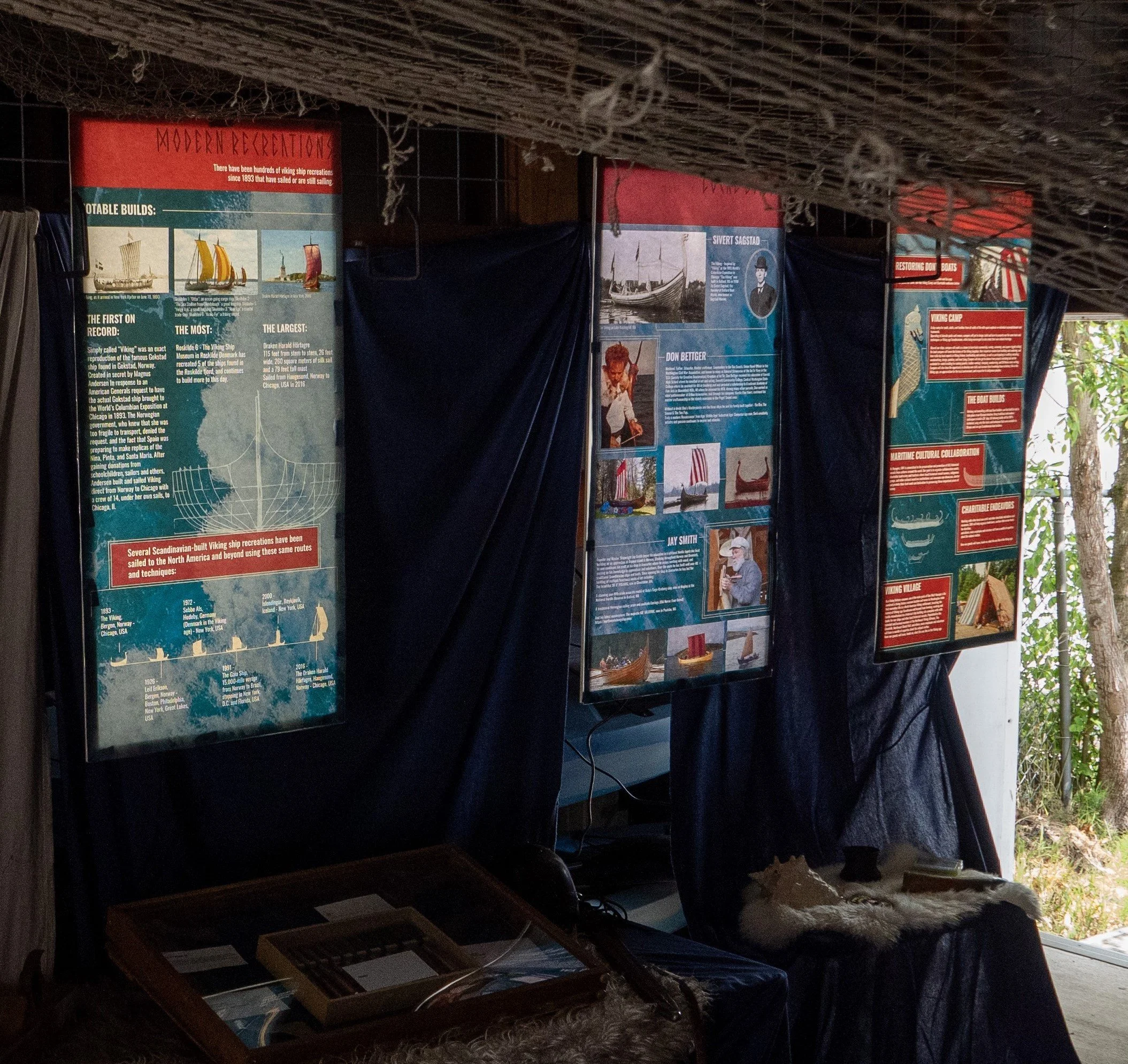 Our mobile Pop-Up Museum is an educational experience featuring hands-on exhibits and informational displays that showcase the history and build process of Viking longship construction, their sailing and navigation, and what modern shipwrights and sailors are doing to carry on these ancient traditions