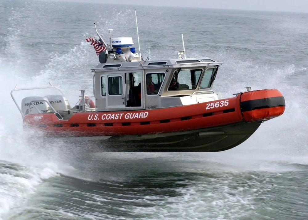 Just as we were yelling and waving at them, a Coast Guard response boat arrived and escorted us all back to the docks.