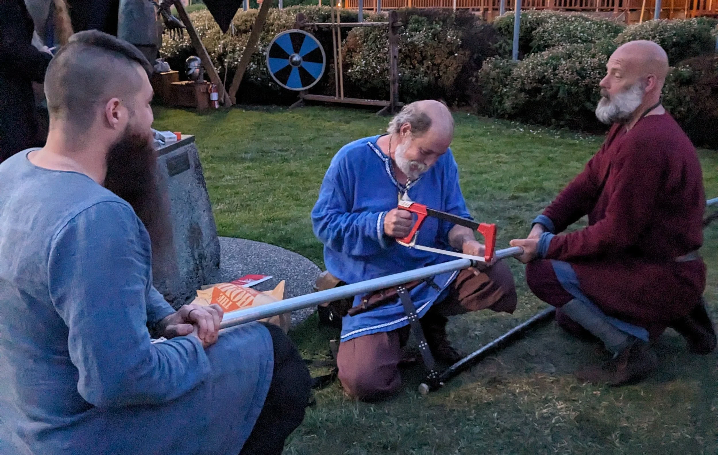 Vhaldis of the Spokane-based Solhjamer Viking Alliance group used the bracing line off-cuts to reinforce the foot of the sail where it had torn.